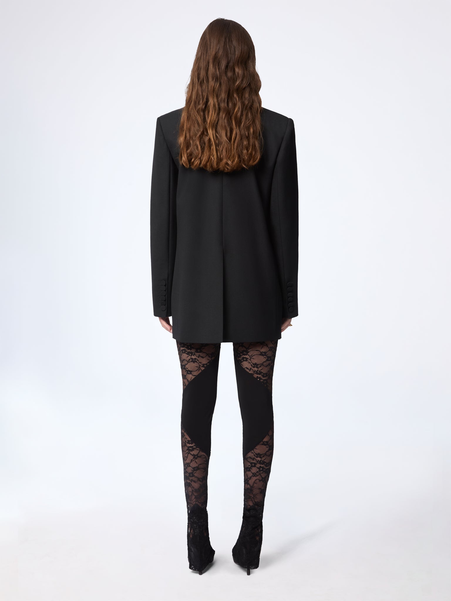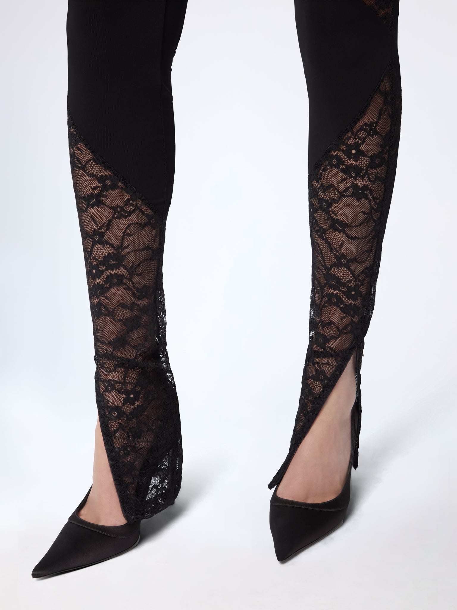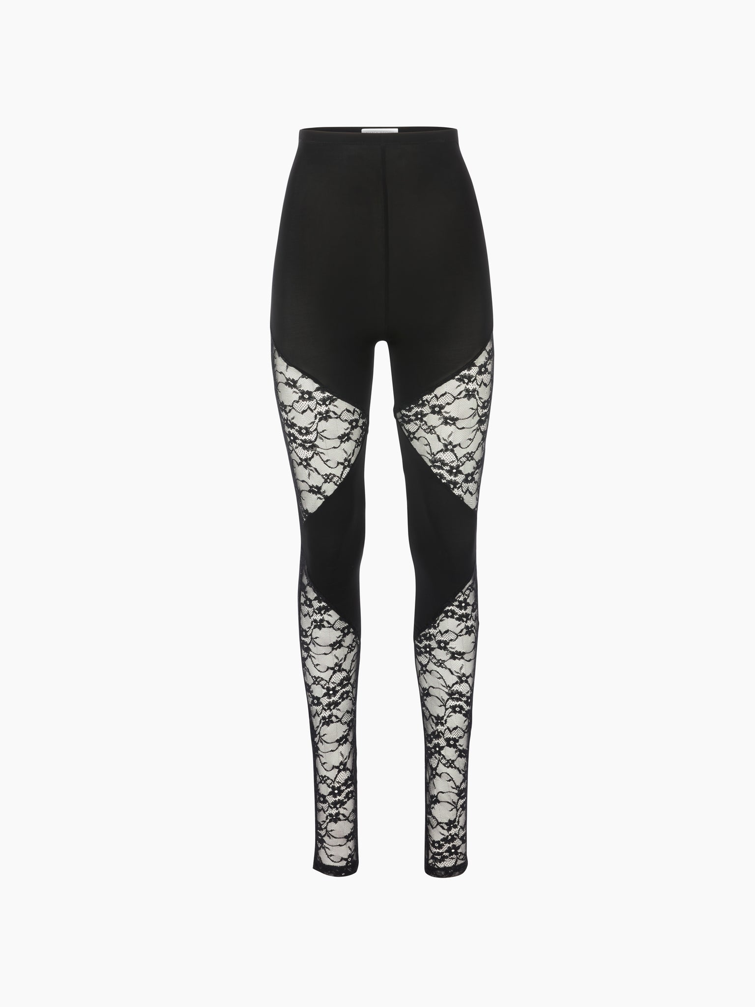 Ce legging patchwork associe un jersey stretch opaque à un insert en dentelle florale transparente. La ligne diagonale qui traverse la jambe en souligne les courbes avec précision, tandis que sa coupe ajustée et son ourlet fendu allongent la silhouette. Issu de la collection Printemps-Été 2026, il apporte la finesse de la lingerie à une allure structurée.